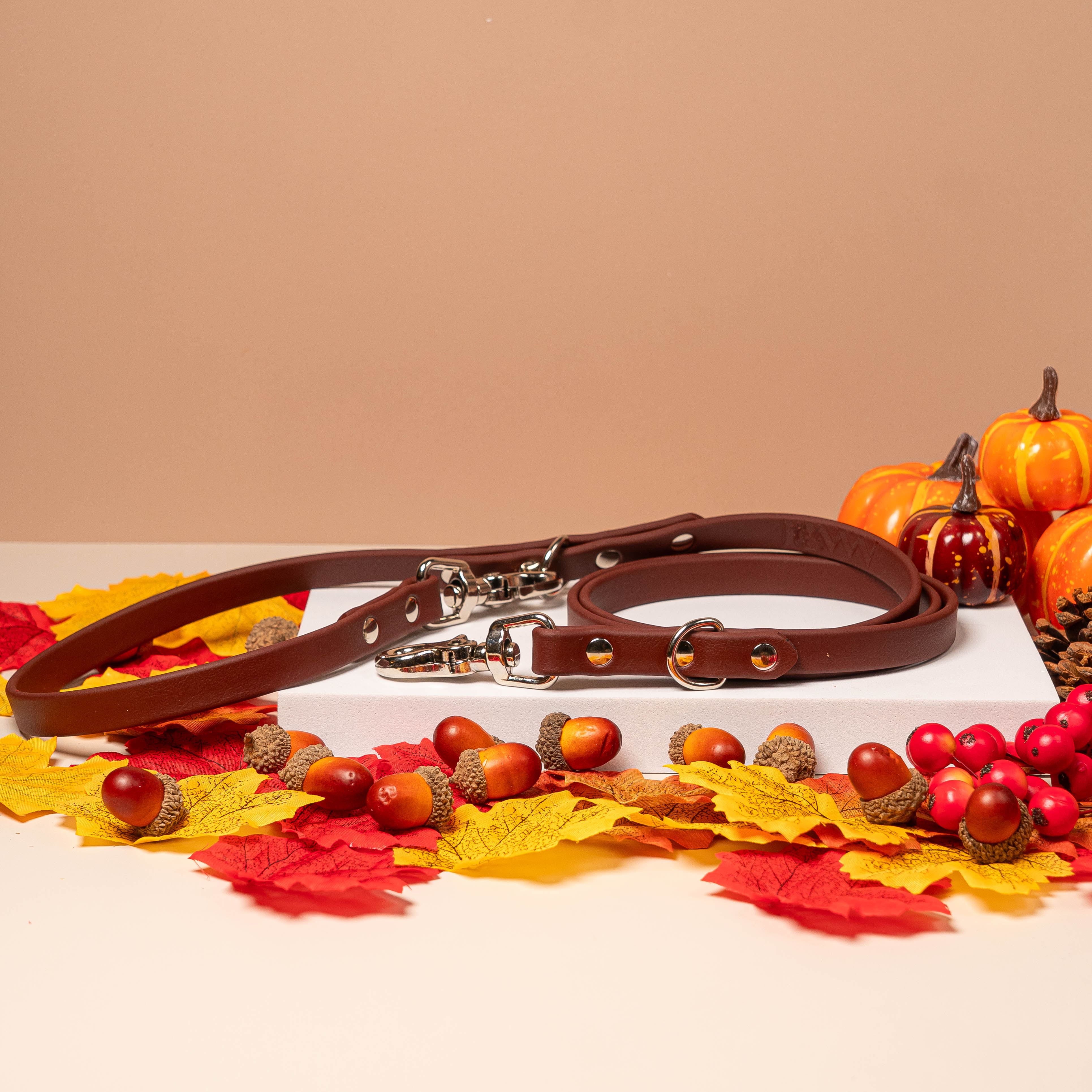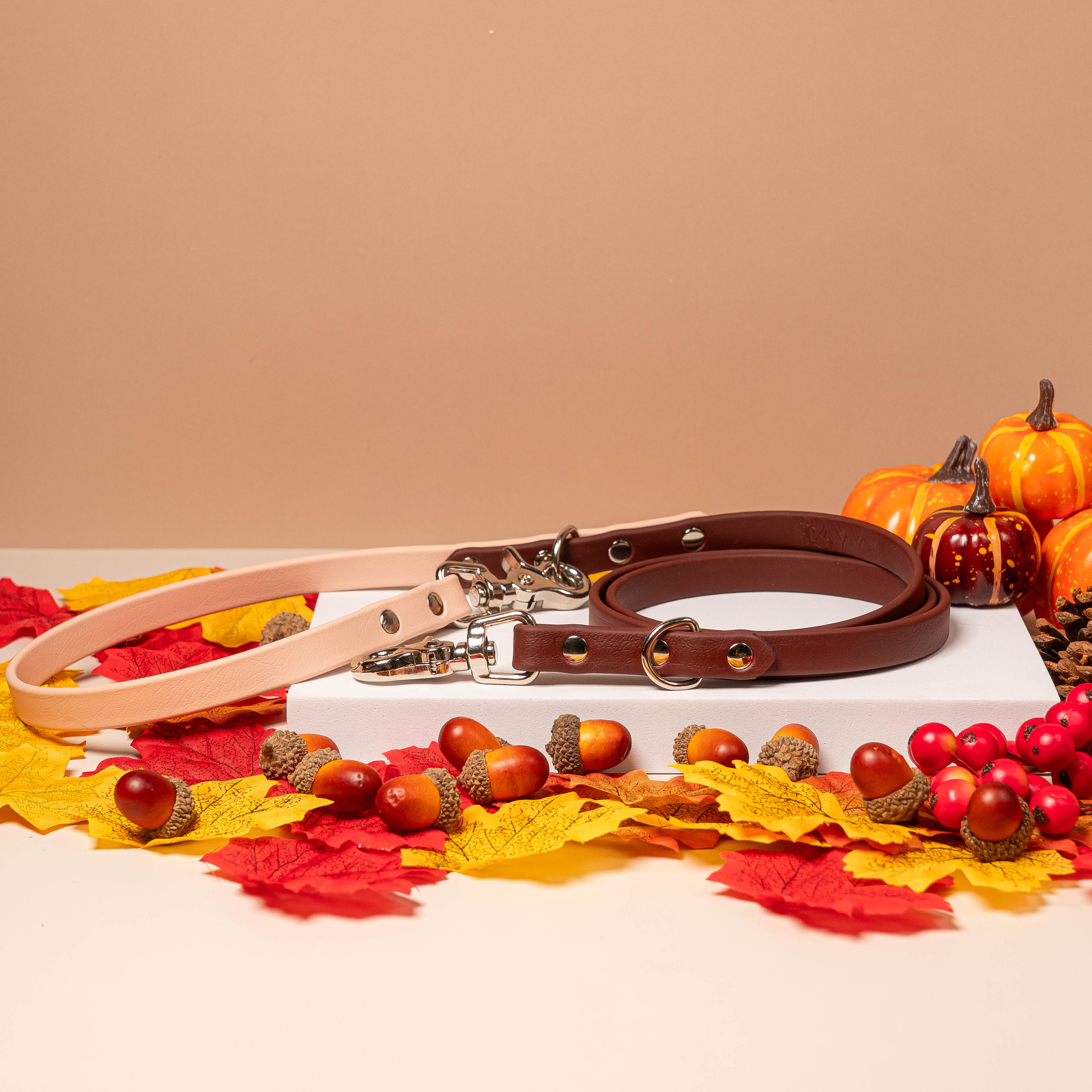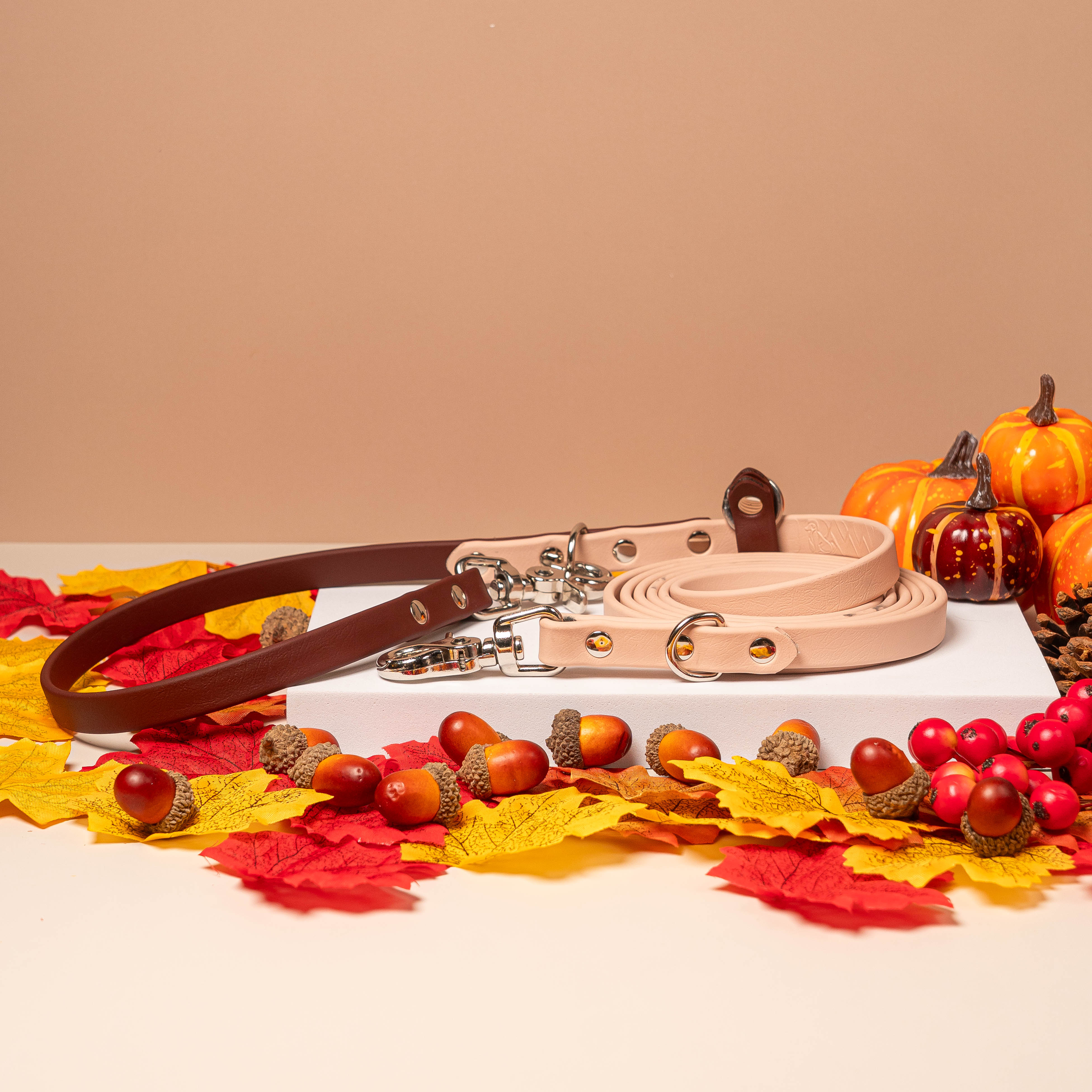 • Pupberry in Mulberry Brown x Sorbet Tan - Fall Collection Pupway™ 3-in-1 Handsfree Biothane Dog Leash